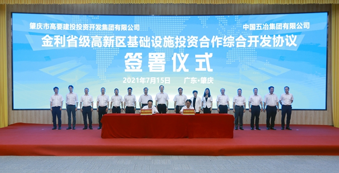7月15日,中國五冶集團(tuán)與廣東肇慶高要建設(shè)投資開發(fā)集團(tuán)簽署肇慶金利高新技術(shù)產(chǎn)業(yè)開發(fā)區(qū)(含蜆崗鎮(zhèn))、活道橫江產(chǎn)業(yè)園基礎(chǔ)設(shè)施項(xiàng)目投資合作協(xié)議。肇慶市委常委、高要區(qū)委書記楊志,中國五冶集團(tuán)黨委書記、董事長朱永繁出席并見證簽約。