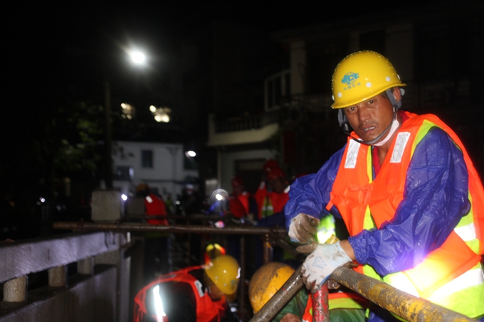 因常綠溪上老橋護(hù)欄已有多段被大水沖毀,為保證河堤保護(hù)區(qū)不受洪水中夾雜的石塊及木頭沖擊,五冶搶險(xiǎn)隊(duì)伍用鋼管腳手架搭設(shè)護(hù)欄并用沙袋封堵,經(jīng)過五小時(shí)的艱苦奮戰(zhàn),構(gòu)筑了長(zhǎng)達(dá)兩公里的人民生命財(cái)產(chǎn)安全防線。搶險(xiǎn)結(jié)束后,面對(duì)當(dāng)?shù)仉娨暸_(tái)的鏡頭,周善輝坦言:“中國(guó)五冶集團(tuán)是國(guó)家的五冶,是人民的五冶,在國(guó)家和人民需要時(shí),五冶人必將身先士卒、義不容辭、沖鋒在前。今天搶險(xiǎn)只是開始,五冶人還將組建百人預(yù)備隊(duì),隨時(shí)等候政府及人民的調(diào)遣,為保障人民群眾生命財(cái)產(chǎn)安全貢獻(xiàn)央企力量。”