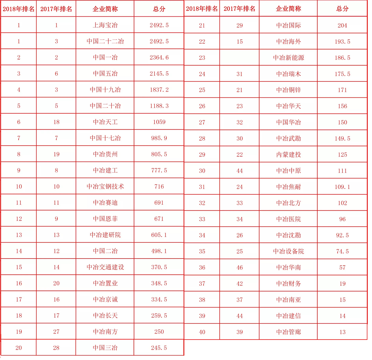 2018年度中冶集團子企業(yè)新聞宣傳排名