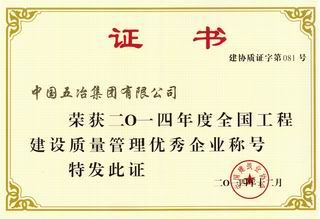 ??2015年2月,中國(guó)五冶集團(tuán)有限公司榮獲2014年度全國(guó)工程建設(shè)質(zhì)量管理優(yōu)秀企業(yè)稱號(hào)。