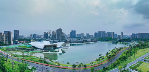 據(jù)悉,天府藝術(shù)公園項(xiàng)目是第31屆世界大運(yùn)會(huì)配套項(xiàng)目中的“文旅高地”,也是成都幸福美好生活十大工程之一。項(xiàng)目位于金牛國賓片區(qū),總建筑面積22.8萬平方米,以川西文脈為基調(diào),定位于“國賓接待會(huì)客廳、蜀風(fēng)雅韻體驗(yàn)區(qū)、公園城市示范區(qū)”,著力打造林環(huán)水繞的蜀風(fēng)畫卷。在項(xiàng)目建設(shè)過程中,承建方中國五冶踐行綠色發(fā)展理念,應(yīng)用了大量創(chuàng)新技術(shù),推動(dòng)綠色建造。尤其是在當(dāng)代藝術(shù)館·圖書館采用了“大坡度輕型屋面綠化技術(shù)”,打造出全國最大的輕型種植屋面,總面積達(dá)到21870平方米。此外,項(xiàng)目還在海綿城市、建筑節(jié)能、綠色施工等領(lǐng)域應(yīng)用了一大批創(chuàng)新工藝和舉措,在施工期間節(jié)約水資源3.5萬噸,節(jié)約用電54.7萬度。
