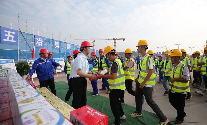 10月1日國慶節(jié),中國五冶集團黨委書記、董事長朱永繁一行到項目慰問并帶班檢查。集團公司領(lǐng)導周悅靜、萬明海、譚興山、楊林源、張剛,相關(guān)非班子高管、副三總師、安全總監(jiān),生產(chǎn)經(jīng)營部門及黨群工作部、辦公室負責人,四川地區(qū)各單位總經(jīng)理,分管履約、經(jīng)營副總經(jīng)理,簡陽片區(qū)項目經(jīng)理等參加活動。