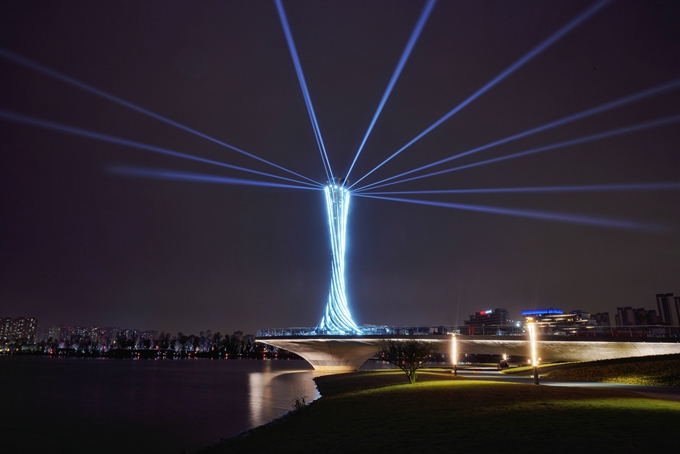 火炬塔照明控制系統(tǒng)采用模塊控制方式,選用高效節(jié)能、壽命長的光源,可以實現(xiàn)自動開關(guān)、根據(jù)環(huán)境劃分場景等功能,并可根據(jù)實際情況設(shè)置日常、節(jié)假日、重大節(jié)日等不同模式。大運(yùn)會期間將開啟大運(yùn)“專屬”模式,火炬塔承載圣火,賽后利用全息投影技術(shù)在夜間重現(xiàn)大運(yùn)圣火燃燒的時刻,成為東安湖公園“世界會客廳”的獨特風(fēng)景;平時將開啟日常模式,采用高空投射燈射向夜空,在開闊的周邊環(huán)境中璀璨奪目,成為蓉城夜間標(biāo)志性的網(wǎng)紅打卡點。