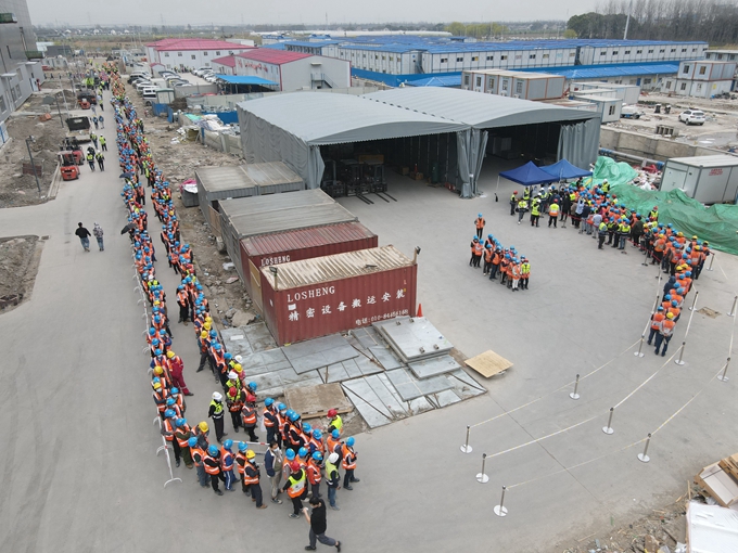 復工之前,項目部就組織了復工防疫交底會,在交底和教育的基礎(chǔ)上,由項目經(jīng)理帶隊,對各工區(qū)進行全方位系統(tǒng)性排摸。復工后,項目部嚴格制定疫情防控方案和應(yīng)急預(yù)案,做到每日抗原自測,安排管理人員帶隊統(tǒng)一前往工區(qū)。同時,項目部對作業(yè)區(qū)、辦公區(qū)、生活區(qū)、食堂及臨時隔離區(qū)等實行分區(qū)劃片管理,全面清潔消毒,設(shè)置場所碼和“數(shù)字哨兵”,實現(xiàn)“兩點一線”閉環(huán)管理。