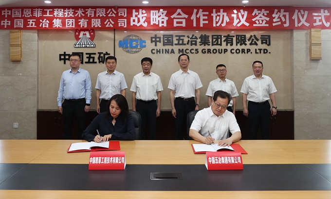 4月19日,中國五冶集團與中國恩菲工程技術(shù)有限公司簽署戰(zhàn)略合作協(xié)議,集團公司黨委書記、董事長朱永繁,中國恩菲董事長劉誠出席并見證簽約。