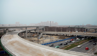目前十陵立交橋改造工程已經(jīng)完成80%,原有橋加固、南三環(huán)外支三渠、鋼箱梁吊裝已全部結(jié)束。砼箱梁7聯(lián)、輔道路基施工,底層排水、新、舊人行天橋穿插施工正在加班加點進行。預計5月底?A、B、C、E4條匝道將順利通車。十陵立交橋全部工程將于6月底竣工。