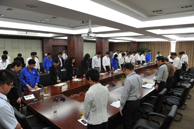 在上海有限公司機(jī)關(guān),舉行向遇難員工的哀悼活動
