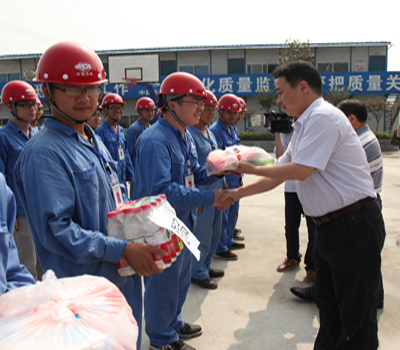 8月7日,成都市總工會副主席郭強、保障部部長楊元凱、基建工委主任童連一行到中國五冶集團承建的天府新區(qū)重大基礎設施建設項目元華路項目慰問一線員工,向他們送上了礦泉水和生活用品大禮包等防暑降溫物品。