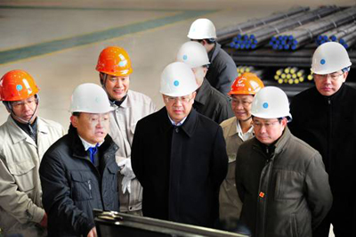 廣東省委書記胡春華正在視察中國五冶集團(tuán)承建的廣東韶鋼特棒項(xiàng)目