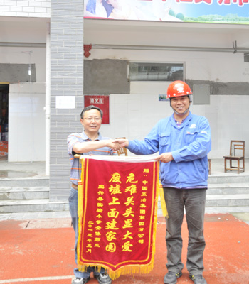 5月24日,縣實(shí)驗(yàn)小學(xué)學(xué)生代表向參戰(zhàn)人員送來了感謝信,學(xué)校校長(zhǎng)也向項(xiàng)目部送來了“危難關(guān)頭顯大愛,廢墟上面建家園”的錦旗。??????????(王成建)