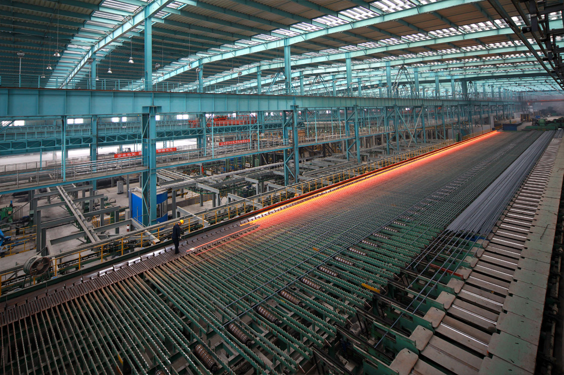 圖為威鋼高速線(xiàn)材生產(chǎn)線(xiàn)——中棒步進(jìn)式冷床生產(chǎn)場(chǎng)景