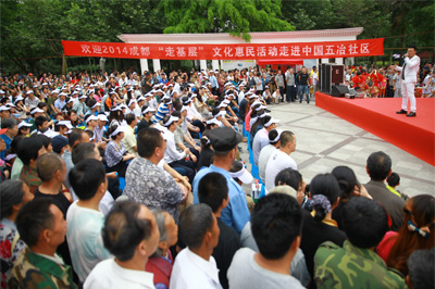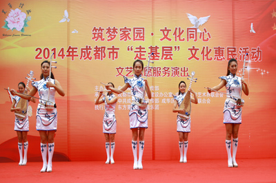 5月25日下午3點(diǎn),成都市委宣傳部主辦的2014“走基層”文化惠民活動(dòng)走進(jìn)五冶社區(qū),在新華公園廣場(chǎng)舉行慰問(wèn)演出。東方茉莉女子國(guó)樂(lè)團(tuán)等知名演藝團(tuán)體和馬渲子、郭仕軍、何剛等一批國(guó)家一級(jí)演員、四川青年喜劇演員、男高音歌唱家等本土文化名人到場(chǎng)獻(xiàn)藝。中國(guó)五冶集團(tuán)教培中心選派的舞蹈《歡歌起舞》代表中國(guó)五冶集團(tuán)青年志愿者同臺(tái)演出。