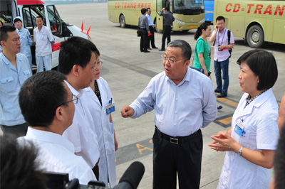 程并強(qiáng)在機(jī)場(chǎng)部署救助接收傷員工作