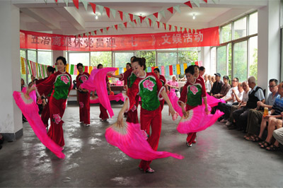 6月27日上午9點(diǎn),從雙林路離退休活動(dòng)室中傳來(lái)一陣陣悠揚(yáng)的歌聲,一群身著大紅喜慶服飾的美女正翩翩起舞,手上揮舞著的粉扇上下擺動(dòng),婀娜的身姿劃出一道道美妙的漣漪。這是中國(guó)五冶集團(tuán)離退休黨員迎“七一”活動(dòng)現(xiàn)場(chǎng),而表演者們,正是這樣的一群?“資深”美女。