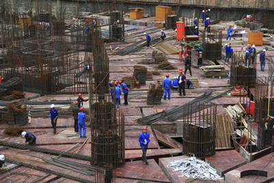 第二批小組于上午9時到達由四公司承建的藍光COCO國際項目。到達現(xiàn)場,項目部班子正在組織協(xié)調(diào)會議,就現(xiàn)場的安全文明施工、施工檢查等一些問題和環(huán)節(jié)進行安排和部署。在陜西公司錦和康城G地塊項目現(xiàn)場,我們看到項目部正組織400多名班組作業(yè)人員進行1#樓地下二層、2#樓地下一層的鋼筋綁扎、復測、檢查等工作,確保下午14時順利開始水泥澆筑。上午11時許,在一公司華新美廬項目部,項目部經(jīng)理正在為假日期間工作作最后的強調(diào)和部署。該項目位于成都市錦江區(qū)成龍路街道辦事處華新村1、2、7組,由八棟建筑構(gòu)成,建筑面積19.64萬平方米,是成都市2013年開工建設的7大保障性住房工程項目之中涉及規(guī)模最大、安置人數(shù)最多的一個工程。由于該工程工期緊、任務重,目前,項目部正加班加點確保該工程于7月份實現(xiàn)全面斷水的工程節(jié)點。