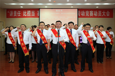 集團公司董事長、黨委書記程并強在會上作重要講話,對演講效果進行了點評,就如何開展好勞動競賽進行了強調(diào)。他說:演講發(fā)言的八名員工代表,既有集團公司領(lǐng)導,也有機關(guān)部門負責人和二級單位負責人,還有基層一線的項目部負責人,他們分別從轉(zhuǎn)型、提升、擴張發(fā)展方面談了講責任、敢擔當?shù)母惺?、體會以及個人的努力和實踐,體現(xiàn)了他們的敬業(yè)和奉獻,從他們身上看到了我們五冶人敢擔當?shù)木瘢吹搅藘杉壗?jīng)營層敢于拼搏的精神、敢于奮斗的精神、努力的工作狀態(tài),體現(xiàn)了五冶員工的敢擔當、講敬業(yè)、負責任的精神;從他們身上看到了集團公司轉(zhuǎn)型、提升、擴張發(fā)展戰(zhàn)略的落實,堅定了我們發(fā)展的信心和決心。在開展勞動競賽動員中,集團公司各級勞模和先進典型的代表進行了鄭重承諾和集體倡議,有氣勢、有力量、鼓舞人心,為他們的擔當精神、敬業(yè)精神和責任意識點贊。