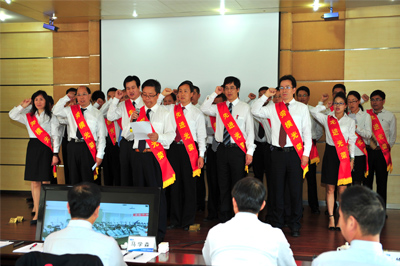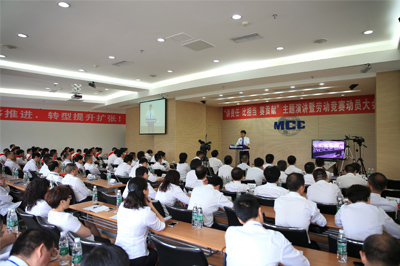 “認真踐行‘打造競爭優(yōu)勢’的發(fā)展文化、‘嚴細新實’的管理文化、‘敢擔當看療效’的責任文化,充滿勇氣、充滿信心、充滿激情,奮力開拓市場、全面提升產(chǎn)品、促進經(jīng)營創(chuàng)效,為實現(xiàn)‘轉(zhuǎn)型、提升、擴張’戰(zhàn)略目標而努力奮斗!”5月4日上午,中國五冶大廈三樓多功能廳和上??萍紭橇鶚谴髲d里掌聲雷動,一場以“講責任?比擔當?賽貢獻”的主題演講和“比貢獻?看療效?保目標”的勞動競賽動員大會正在進行。集團公司領(lǐng)導、董事會秘書、總經(jīng)理助理、副三總師,集團公司機關(guān)部門正副職、主管,四川地區(qū)各二級單位班子成員,上海有限公司班子成員,上海有限公司機關(guān)部門正副職、主管,上海有限公司各單位班子成員共三百余名參加。會議由集團公司董事、總經(jīng)理蒙昌嘉主持。