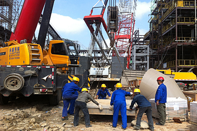 湛江鋼鐵基地項(xiàng)目的同事們正在吊裝設(shè)備