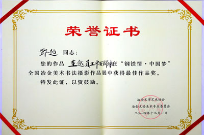 在中冶集團(tuán)承辦的“鋼鐵情?中國(guó)夢(mèng)”為主題的2014年全國(guó)冶金美術(shù)作品展活動(dòng)中,我公司員工董玉竹、蘭娜、鄧超的3幅作品獲得最佳作品獎(jiǎng),6幅作品獲得優(yōu)秀作品獎(jiǎng)。據(jù)了解,此次共有來(lái)自全國(guó)冶金系統(tǒng)的近500幅作品參加了展出,集團(tuán)文化中心精心組織,挑選了一批優(yōu)秀作品參加展覽,這些美術(shù)攝影作品從藝術(shù)角度反映了“中國(guó)夢(mèng)”與“美好中冶”的緊密關(guān)系,表現(xiàn)出了五冶人?“一天也不耽誤,一天也不懈怠”的奮斗精神,受到組委會(huì)的一致好評(píng)。(鄧超)?