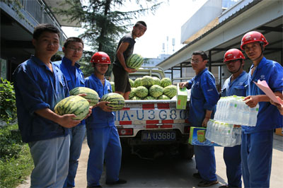 近來,四川地區(qū)連日高溫,廣大職工仍堅守在施工一線。7月27日,集團(tuán)公司工會受集團(tuán)公司黨政領(lǐng)導(dǎo)委托,在四川地區(qū)施工現(xiàn)場開展了高溫慰問送清涼活動,為一線職工送去了慰問信以及涼茶、西瓜、礦泉水等慰問品。首批慰問了新華之星項目、華新美廬項目、藍(lán)光COCO國際項目、博覽城項目等地,送上了黨政領(lǐng)導(dǎo)的關(guān)愛和慰問。