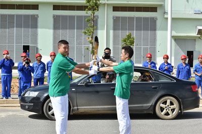 當(dāng)歷經(jīng)1950公里的火種踏上湛鋼的那一時(shí)刻,承載著無數(shù)冶建人關(guān)注與守護(hù)的希望之火就此在湛江這片熱土上燎原。火炬?zhèn)鬟f過程中,郝大偉與現(xiàn)場(chǎng)加油的五冶人高呼:“湛江高爐點(diǎn)火我們準(zhǔn)備好了!五冶雄起!加油!加油!加油!”