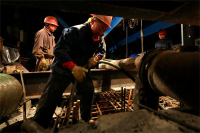 凌晨三點,溫度接近零度時工作人員開始掛籃懸澆作業(yè)