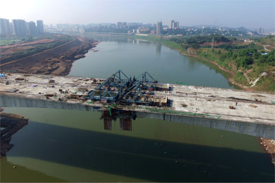 主跨半幅澆筑完成后合攏后的渠江三橋
