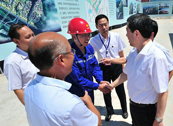 8月10日上午,河南省長陳潤兒率省直有關(guān)廳局主要負(fù)責(zé)同志、各省轄市市長、第一批實(shí)施“百城建設(shè)提質(zhì)工程”的43個(gè)縣(巿)長組成的觀摩團(tuán)來到由中國五冶集團(tuán)承建的汝州科教園區(qū)項(xiàng)目工地。汝州市委書記高建軍、市長陳天富陪同觀摩。
