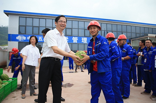 同時,集團公司領(lǐng)導(dǎo)一行對公司宜賓片區(qū)在建項目員工致以親切慰問,為大家送上了西瓜、飲料、藿香正氣水等防暑用品,并叮囑大家在高溫施工期間,要保重身體、確保安全,讓公司放心,讓家人放心。(鄧超)