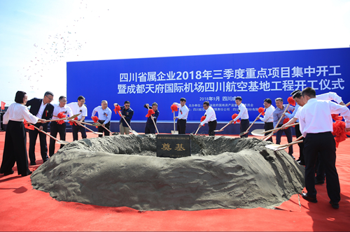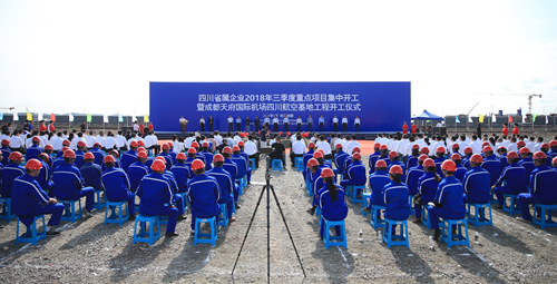 9月17日上午,四川省屬國有企業(yè)2018年三季度重點項目集中開工儀式在中國五冶集團承建的成都新機場四川航空基地工程航空食品與貨運施工總承包工程項目現(xiàn)場舉行。四川省國資委副主任薛東兵,四川航空集團有限責(zé)任公司黨委書記、董事長李海鷹,中國五冶集團董事長、黨委書記程并強等有關(guān)領(lǐng)導(dǎo)出席開工儀式并致辭。集團公司副總經(jīng)理張剛、營銷總監(jiān)曾松俊,一分公司、工程管理部、市場營銷部有關(guān)負(fù)責(zé)人參加開工儀式。
