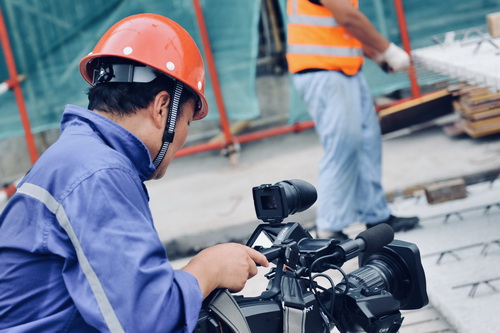 文化中心在大雨中采訪現(xiàn)場指揮的管理人員