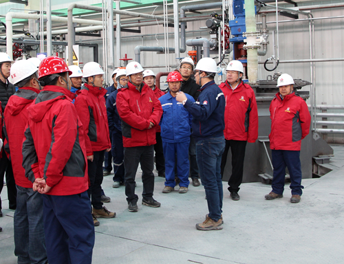 李連華一行視察了項目鹵水預(yù)處理車間、變配電及計控中心、沉鋰車間等施工現(xiàn)場,詳細了解了工程的施工進展情況,安全生產(chǎn)措施的落實情況及試車工作等相關(guān)事宜,對工程的進度、質(zhì)量和現(xiàn)場安全文明施工給予了肯定,同時希望大家要認真落實好中國五礦“大干一百天、確保兩翻番”的決策部署,確保項目履約。