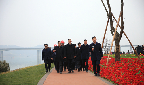 在中國五冶建設(shè)的濱江大道景觀工程現(xiàn)場(chǎng),宋朝華表示,項(xiàng)目讓人感受很深,濱江景觀工程在謀劃實(shí)施時(shí),始終堅(jiān)持生態(tài)優(yōu)先、生態(tài)打底;始終堅(jiān)持文化為魂,抗戰(zhàn)到底雕塑、清暉閣重建等很好傳承了歷史文化;始終堅(jiān)持以人為本,使這里真正成了市民休閑處、城市會(huì)客廳。