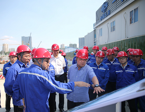 每到一處,程并強都深入項目現(xiàn)場,仔細(xì)察看項目總平布置、形象打造、安全文明綠色施工、技術(shù)質(zhì)量管理、裝配式建筑應(yīng)用等方面的情況,詳細(xì)聽取了項目總體規(guī)劃、工程組織、工期計劃、精細(xì)化經(jīng)營管理等方面工作的匯報,并就項目打造的具體細(xì)節(jié)與一線管理人員進(jìn)行交流。