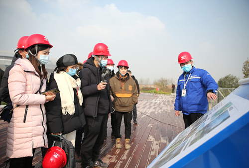 在東安湖生態(tài)公園項(xiàng)目,媒體朋友們參觀項(xiàng)目沙盤后,來(lái)到綜合示范區(qū)觀景平臺(tái),感受中國(guó)五冶在公園城市打造中的巧思。