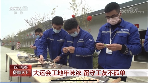 2月14日,大年初三,央視綜合頻道《朝聞天下》欄目以《就地過個暖心年 這群城市建設者堅守崗位不孤單》為題,報道了中國五冶大運會東安湖生態(tài)公園項目在大年三十組織留守員工齊聚食堂籌備餃子宴,在歡笑與佳肴中幸福團年的場景。報道指出,東安湖項目部在備足年飯、年貨之余,還為大家發(fā)放疫情補貼,送上“過節(jié)禮包”,并現(xiàn)場組織大家開展掛燈籠、寫對聯(lián)等豐富多彩的活動,讓留守成都大運會建設一線的兄弟姐妹們度過一個溫馨、祥和的春節(jié)。