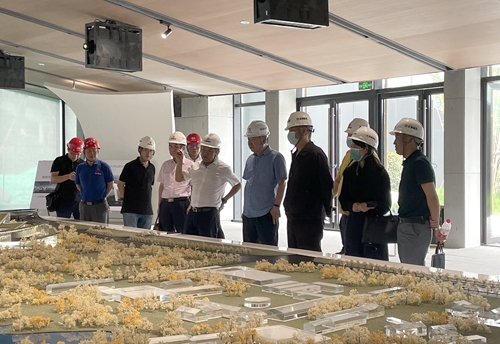 劉昕一行首先來到項目主題館參觀沙盤,觀看宣傳片,并登上屋面遠(yuǎn)眺項目建設(shè)情況。在隨后召開的座談上,劉昕一行詳細(xì)聽取了天府藝術(shù)公園項目基本概況、分段式施工許可辦理和現(xiàn)場管理情況的匯報,并就關(guān)心的問題進(jìn)行深入詢問,和與會人員展開討論交流。與會領(lǐng)導(dǎo)對成都市分段式施工許可辦理工作給予了高度評價,對中國五冶高品質(zhì)打造天府藝術(shù)公園表示肯定,要求進(jìn)一步完善建設(shè)工程管理流程,為加快公園城市建設(shè)提供更加便利的條件。