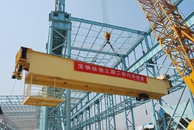 3月26日上午,隨著一聲清脆的哨響,中國五冶集團上海有限機電公司承建的寶鋼硅鋼三期二標(biāo)段行車進行吊裝。