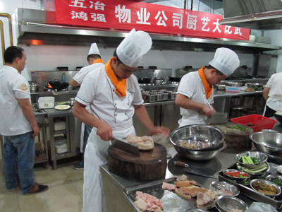???? 為更好地為員工服好務(wù),7月5日,中國五冶集團物業(yè)公司工會分別在物業(yè)公司機關(guān)和五冶大廈舉辦了業(yè)務(wù)技能比武和員工餐廳廚藝大比武兩項競賽活動。集團公司相關(guān)部門負責人及該公司領(lǐng)導(dǎo)親臨賽場。